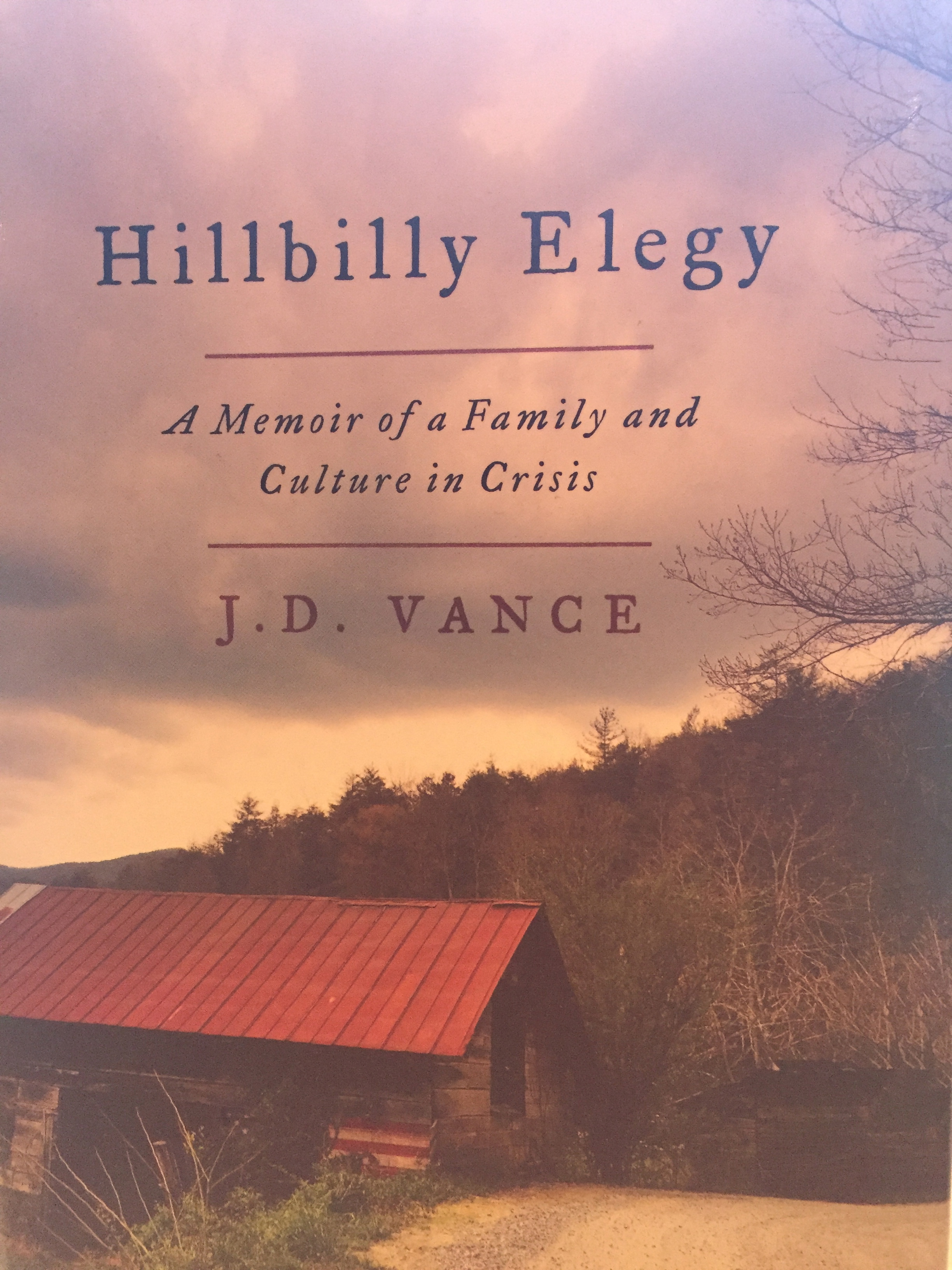 If you are like me, I had to look up the word ‘elegy.’ It means ‘a sad poem, usually written to praise and express sorrow for someone who has died.’ Wow! By its own title, this book is about mourning the death of a culture, the hillbillies. It is kind of a memoir of J. D. Vance and the changes he witnessed in his world.