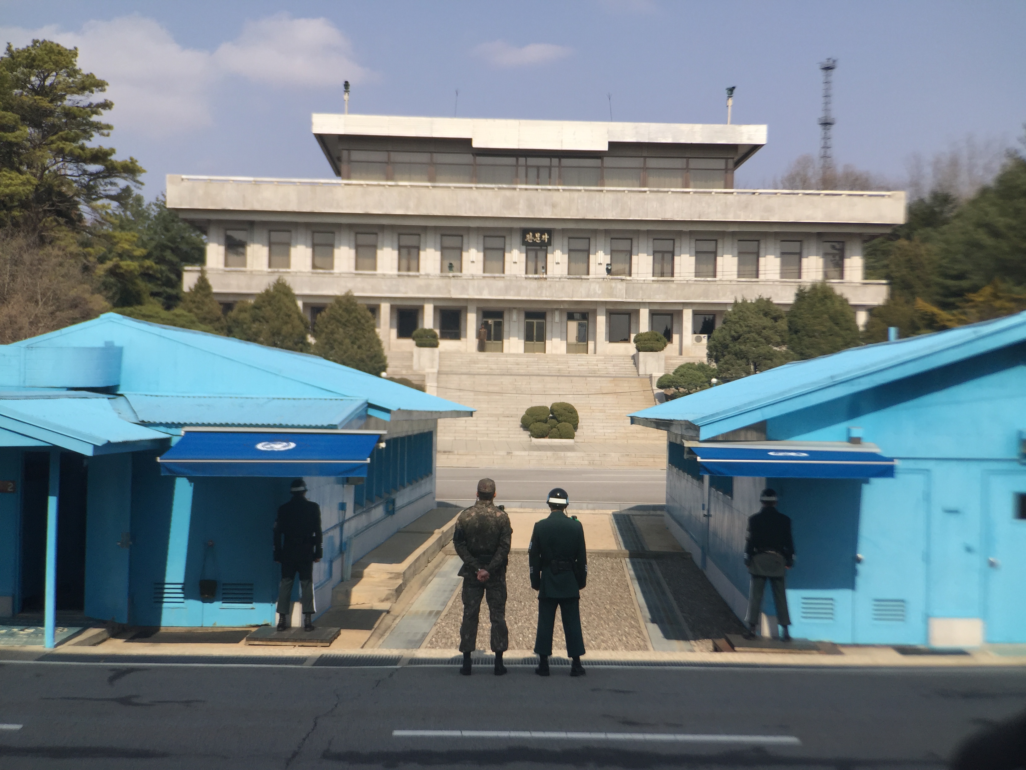 A little history: Korea was at one time under a kingdom. Our guide was a descendant of one of the kings. In 1910 it came under control of the Japanese. Following World War 2, the Soviet Union and the United States divided the country along the 38th parallel (longitudinal line around the world). The Soviets would control the north and the U.S. would control the south. This eventually led to the Korean War in 1950. The war ended in a cease-fire. Yet, these two countries are still at war. The DMZ was created to divide the two warring nations. Panmunjom is a military installation that allows North and South to meet.